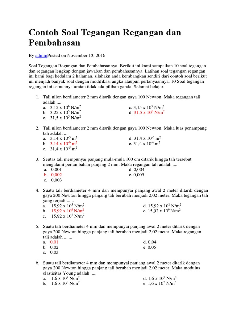 Contoh Soal Tegangan Regangan Dan Pembahasan Ok Pdf